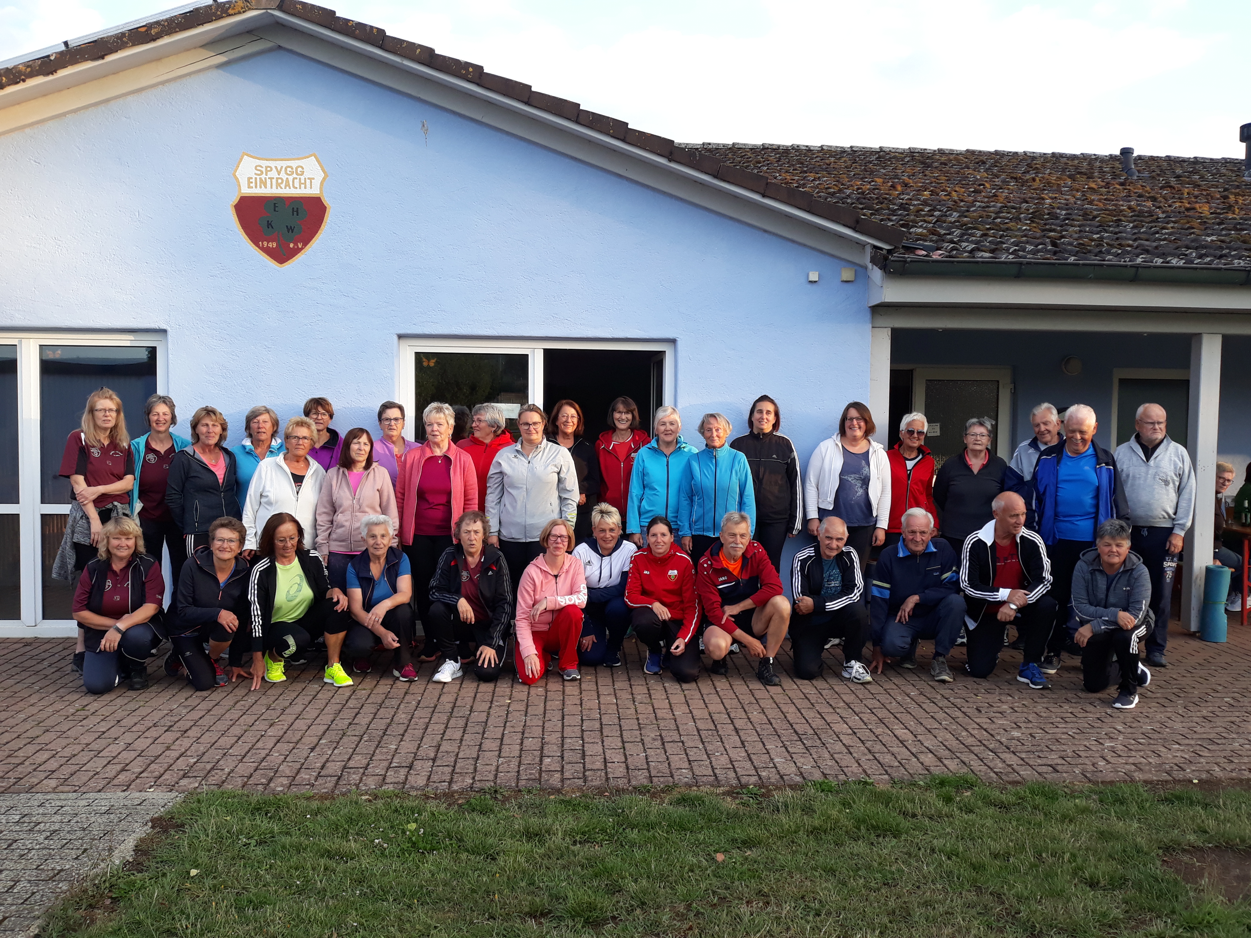 Am 26.07.2023 fand unsere alljährliche "gemeinsam Turnstunde" in Kattenhochstatt statt. Nach einer kurzen Begrüßung ging es auch schon mit Karin Gempel und schwungvoller Musik los, um unsere Muskeln aufzuwärmen. Claudia Schiebsdat zeigte uns einen Bewegungsablauf, der 16 aufeinanderfolgende Übungen beinhaltet, die ständig wiederholt werden, eine tolle Mobilisation für unsere Rücken. Natürlich durfte Moni Hansbauer nicht fehlen, um unsere Bauchmuskulatur zu kräftigen. Mit entspannenden Dehnungen haben wir mit Eva Fanderl die Turnstunde abgerundet und uns danach vollkommen erholt gefühlt. Als aktiven Turner konnten wir unseren 1. Vorstand Norbert Kleemann unter uns begrüßen, der keine Übung ausgelassen hat.