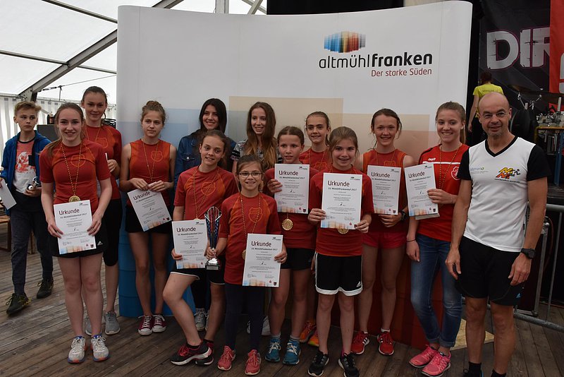 Nachdem es für die männliche Jugend in den letzten Jahren immer nur zum zweiten Platz gereicht hat, konnte heuer der Sieg gegen den Dauerrivalen Arriba Göppersdorf eingefahren werden. Die von Heidi und Tommy Reissig trainierten Jugendlichen hatten im Ziel einen Vorsprung von knapp 5 Minuten. Auch die weibliche Jugend konnte den Sieg einfahren. Bemerkenswert war die Leistung der Mädels, die mit ihrer Zeit bei den Frauen auf den Platz gelandet wären. Insgesamt konnte die Eintracht damit heuer das Triple einfahren und gleichzeitig auch wieder die meisten Mannschaften an den Start stellen. Danke an alle Läuferinnen und Läufer und vor allem an Klaus und Martina Kraft sowie Heidi und Tommy Reissig für die Organisation rund um den Altmühlfrankenlauf.